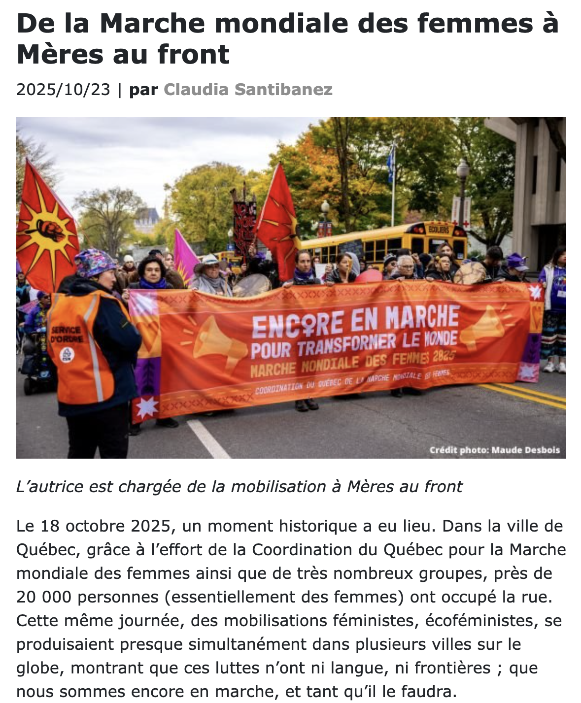 Marchez avec les Mères au front à l'occasion de la Marche mondiale des femmes!