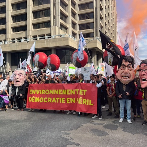 Nous étions plus de 3 000 personnes dans les rues de Gatineau, Montréal, Québec, Rimouski, Baie St-Paul et St-Jérôme ce 27 septembre pour exprimer notre ras-le-bol des mauvaises décisions en environnement du gouvernement Legault et de son mépris de la démocratie! 50 organisations, représentant à elles seules plus de 2 millions de québécois·e·s, ont marché côte à côte pour faire entendre un message clair à François Legault : il faut mettre en œuvre une transition énergétique, écologique, et sociale qui soit au bénéfice de l’ensemble des Québécois et Québécoises, en plus d’inclure la population dans les décisions afin de créer un véritable dialogue social. L’avenir de nos enfants en dépend.
